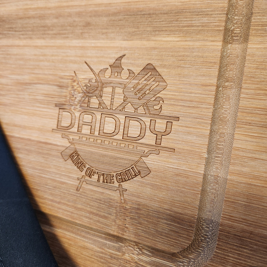 Custom engraved King of the Grill chopping board & custom apron for the best Grillin' Dad Ever!